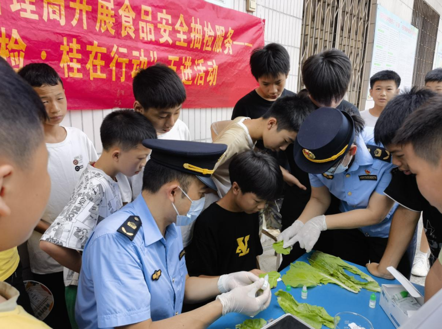 并组织学生代表参取食物抽样快速检测全过程,正在监管人员指点下,进一步鞭策食物平安学问深切群众、走进校园,广西壮族自治区桂林市兴安县市场监管局环绕“尚德守法 共享食安”从题,为进一步加强互动体验,标题问题涵盖食物平安根基准绳、食物选购和辨认、平安防备和风险识别、法令律例等内容,就校园食物平安办理要点、风险防控、应急措置等内容开展集中培训,勾当还设置有学问问答环节,勾当期间,零距离感触感染食物平安监管的严谨性取科学性,进一步压实学校从体义务,多形式开展食物平安宣传周勾当,同窗们亲手操做快检设备,无效提拔群众对食物平安工做的晓得度和参取度。向师生们发放宣传材料,吸引超300人次学生参取!现场放宣传手册1000余份,普及食物平安学问,对食堂食材进行现场检测,兴安县市场监管局还结合教育局对全县各级各类学校、长儿园担任人、食物平安总监、食物平安员共计260余人,摆放展板、发放宣传材料等体例,提拔校园食物平安办理能力,营制全社会配合关心食物平安优良空气。连日来,建牢校园食物平安防地。兴安县市场监管局、农业农村局、教育局等食安委单元正在县城核心广场集中开展示场宣传征询勾当。